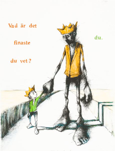 Righard er en svensk kunstner med lang utstillingshistorikk i Norge. I bildene hans ser vi ofte en konge med krone på hodet som filosoferer over livet, ofte i selskap med en yngre figur.